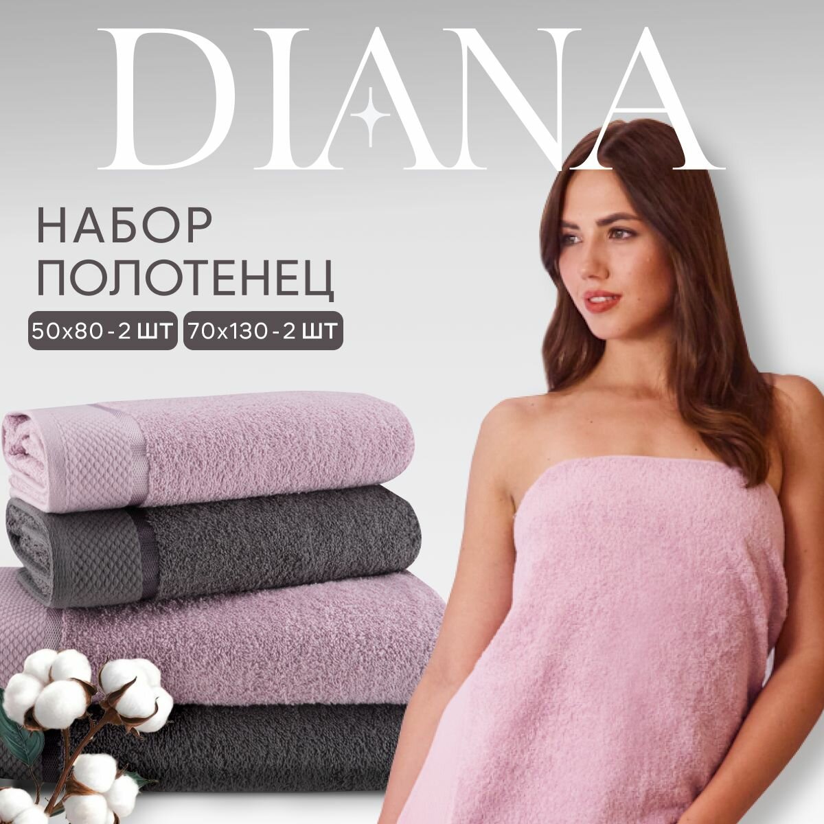 10 цен на Набор полотенец махровых Нуар, Diana , 4 шт. Грей/Гиацинт
