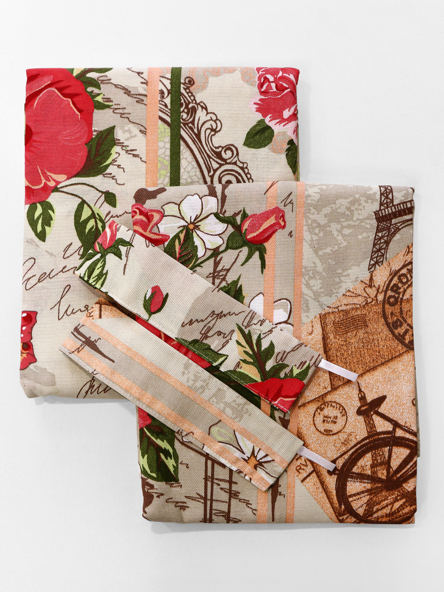 Штора для кухни короткая с подхватом 150х180 см хлопок Розы на бежевом 1 008 ₽