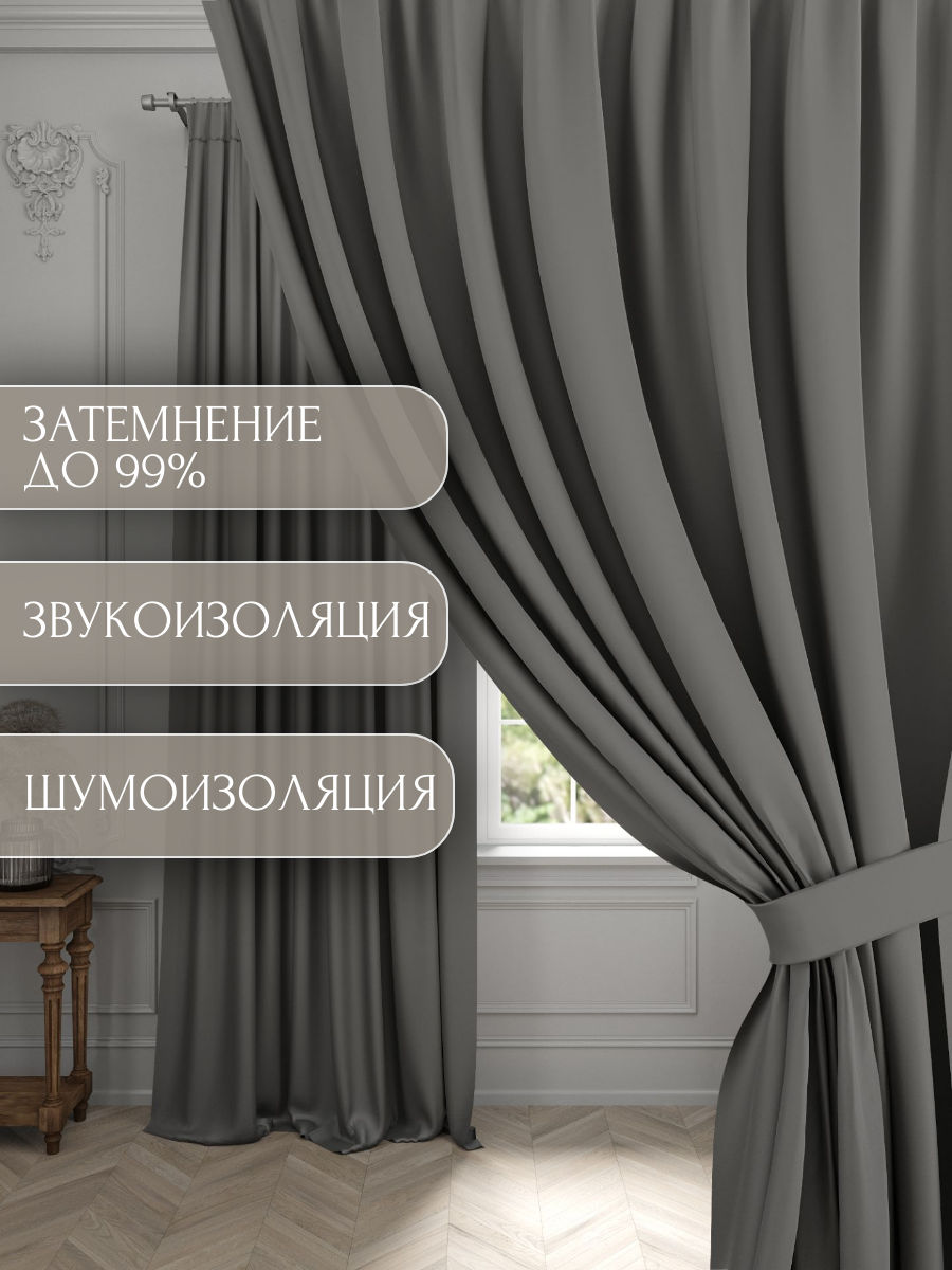 Отзывы на Комплект штор Блэкаут 2 шт. 150*260 см для гостиной, детской и спальни, темно-серый