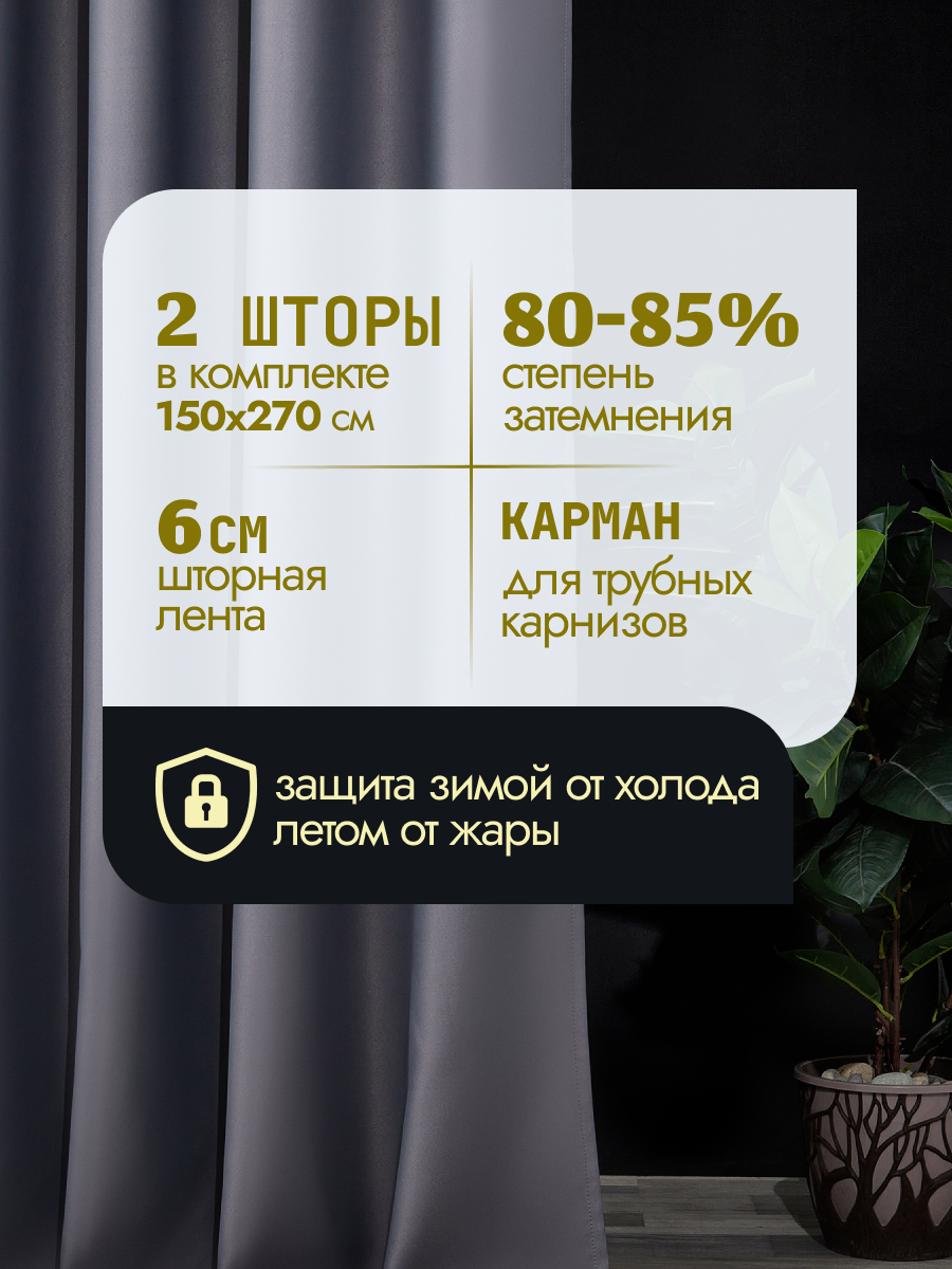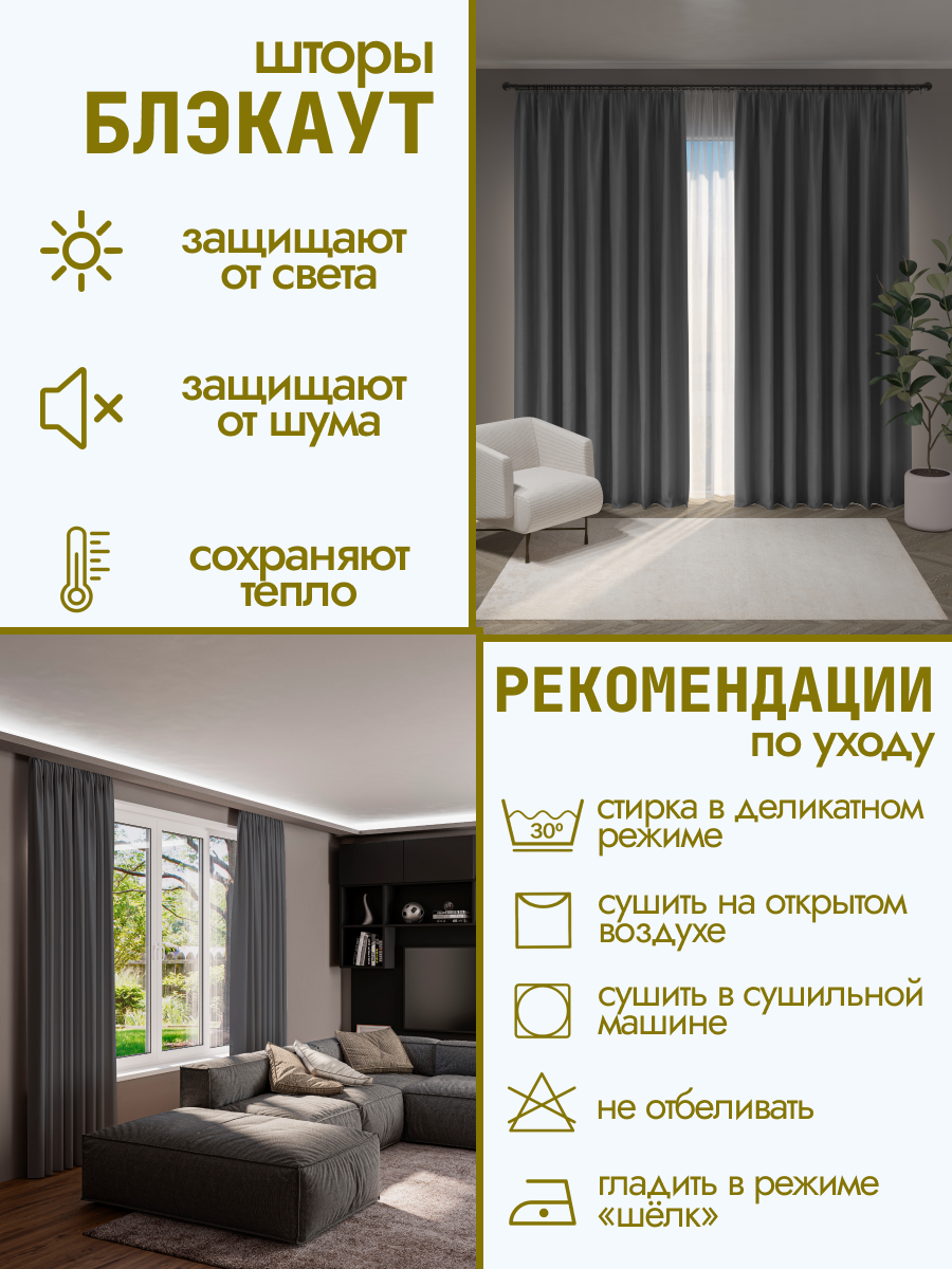 Шторы блэкаут для спали, гостиной, интерьерные темно-серые 150х270 см (2 шт.) информация: