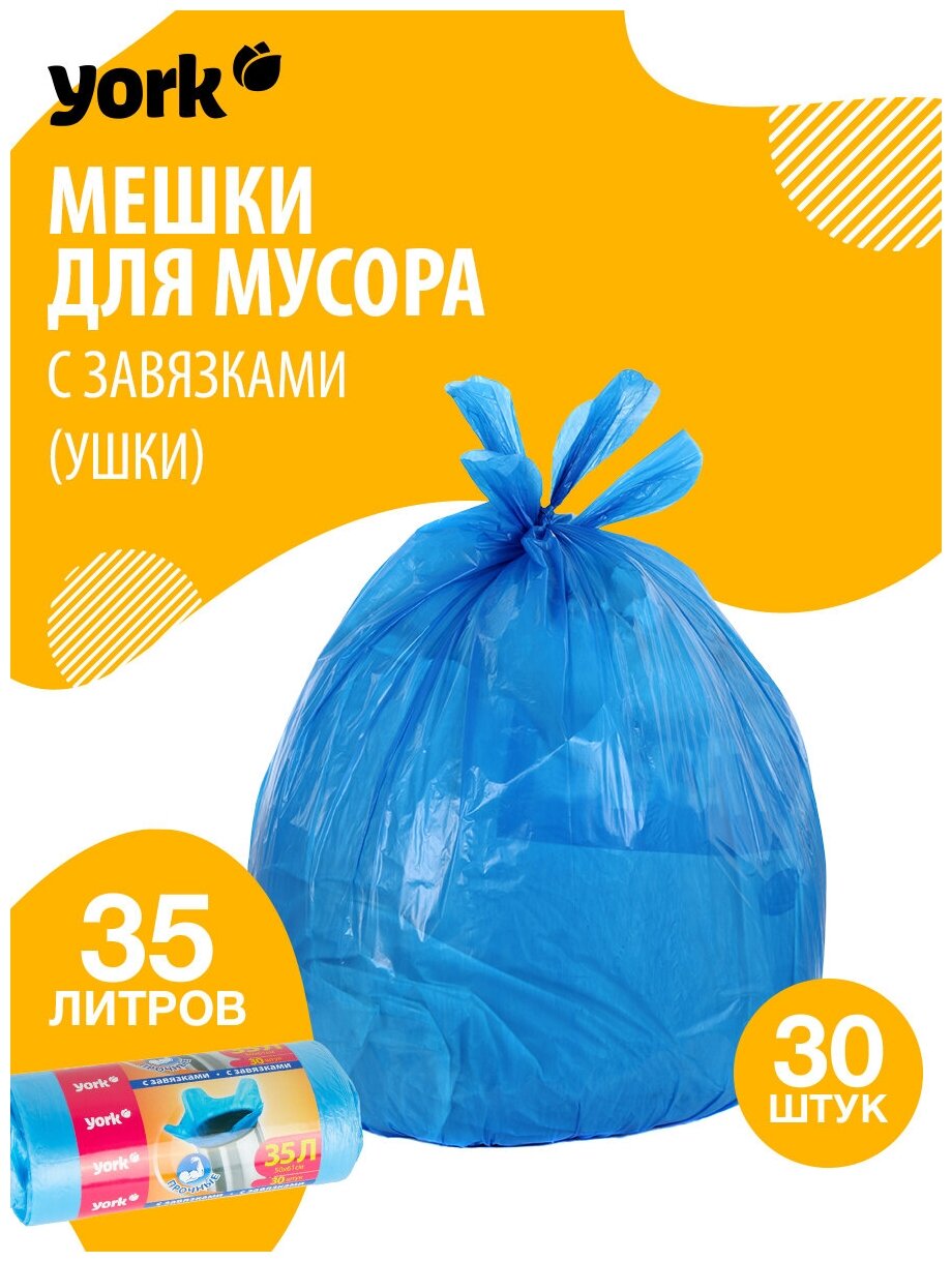 Отзывы на "Мешки для мусора York" 35л, 30шт, с завязками, синие, полиэтилен, ширина 50см