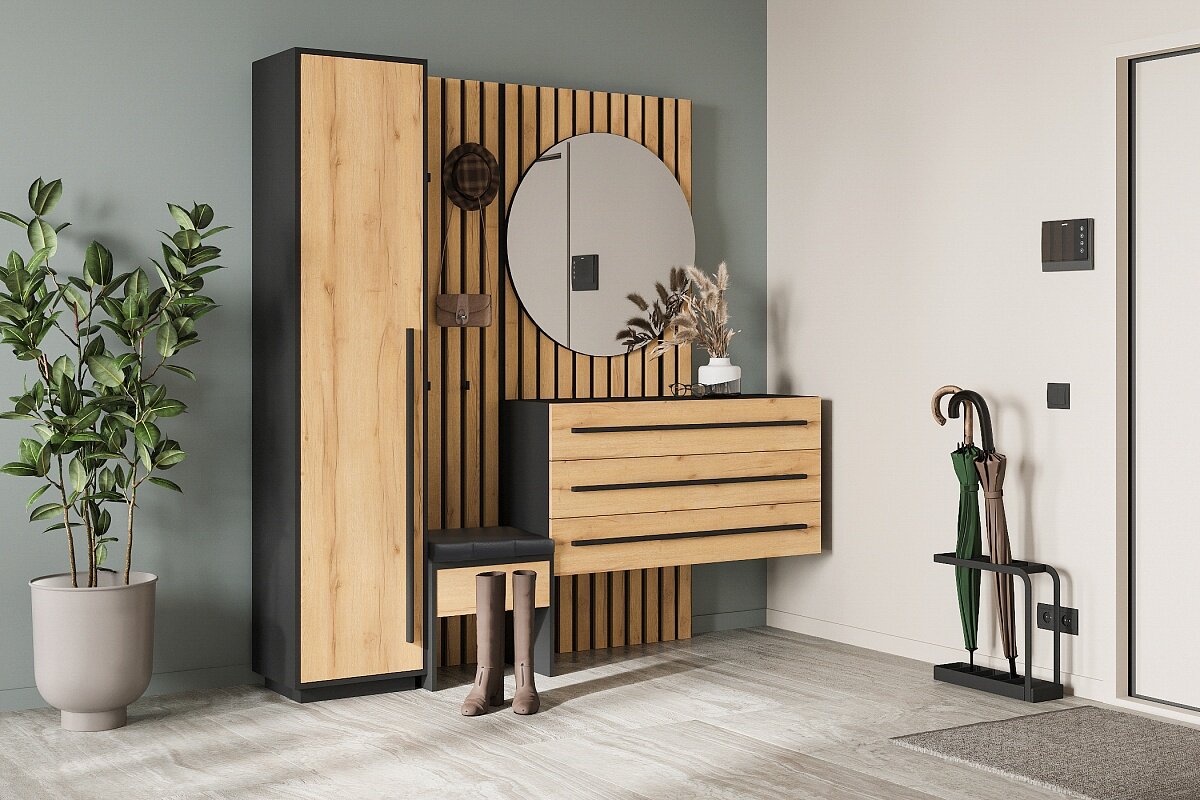 Прихожая МебельЛэнд24 Неаполь - 3 Черный 205x38x200 с 1 зеркалом информация: