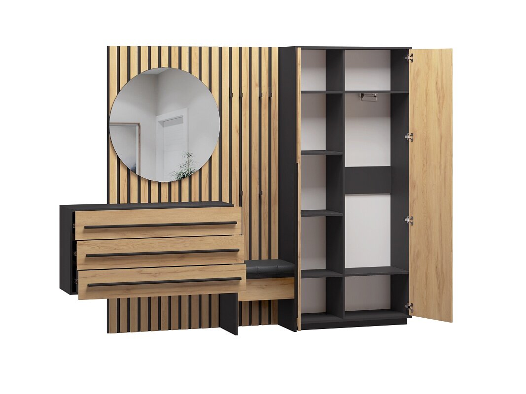 10 цен на Прихожая МебельЛэнд24 Неаполь - 5 Черный 250x38x200 с 1 зеркалом