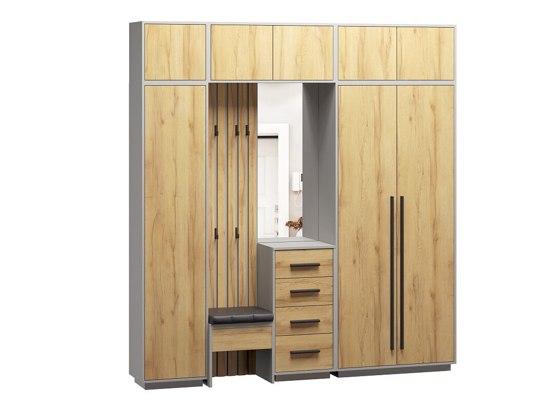 Прихожая МебельЛэнд24 Неаполь - 5 Графит 250x38x200 серый с 1 зеркалом 65 790 ₽