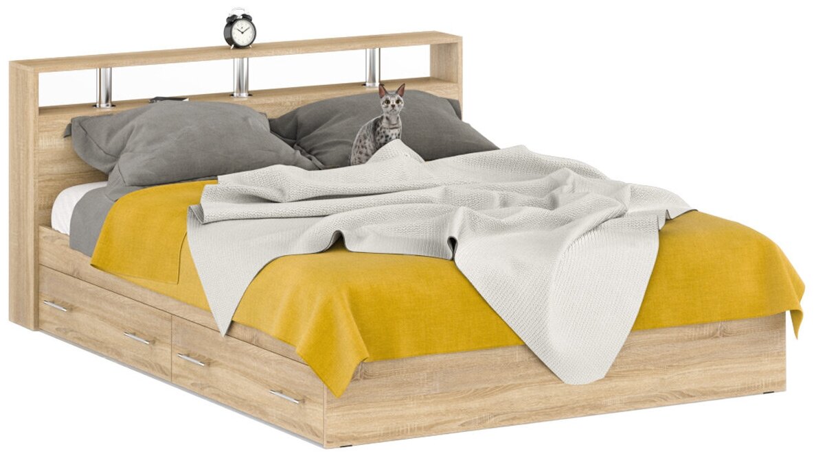 Кровать с ящиками Камелия 1800, цвет дуб сонома, ШхГхВ 183,5х217х78,2 см, спальное место 1800х2000 мм, без матраса, основание есть
