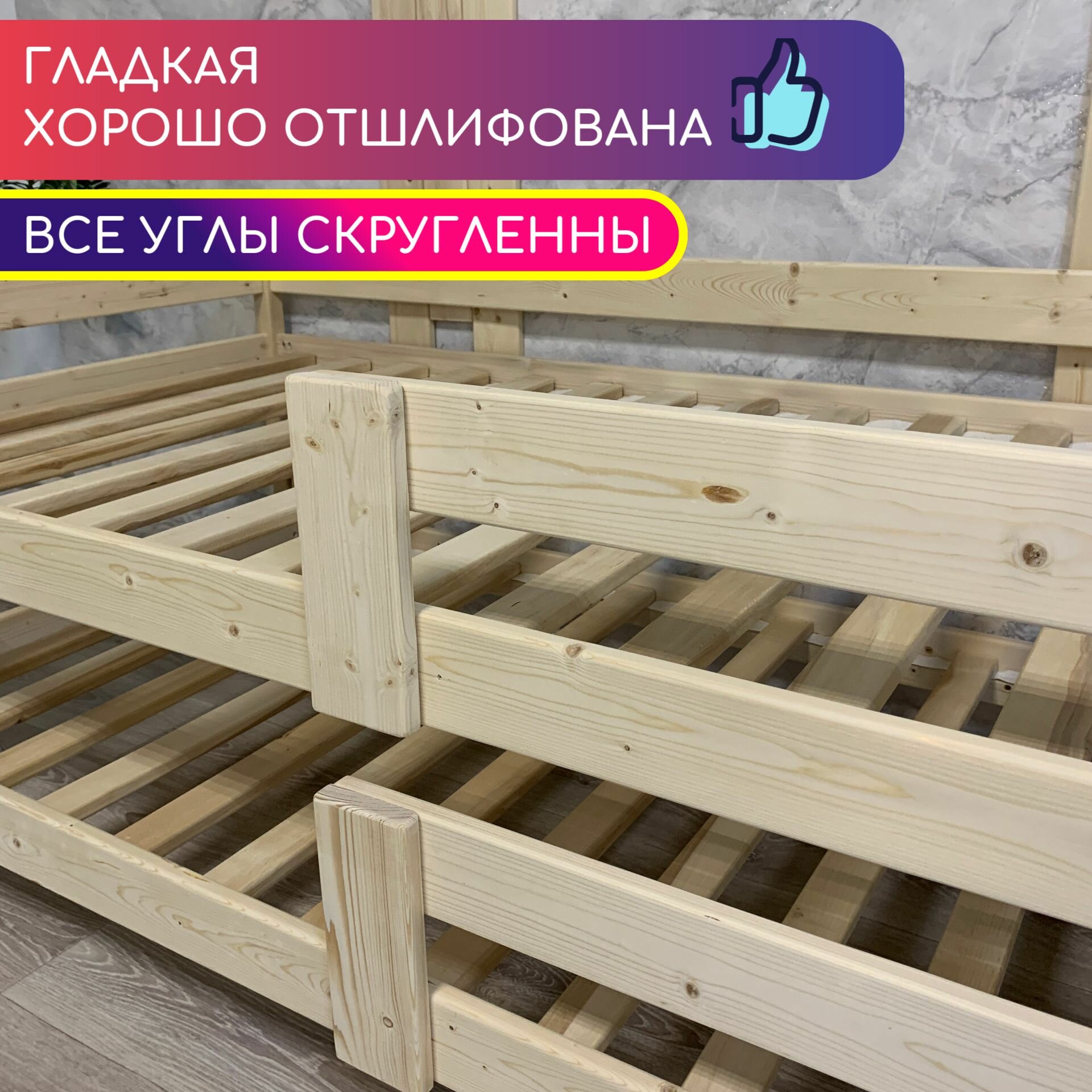Кровать выдвижная, кровать выкатная детская для двоих, двухъярусная кровать "Эсла" 180х80, 170х80 из массива дерева (без покрытия) 16 400 ₽