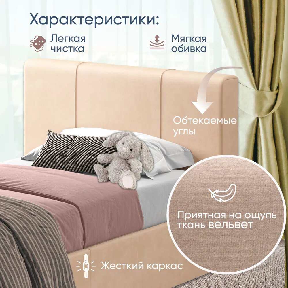 Отзывы на Односпальная кровать детская 90х190 см Марсель, подростковая с подъемным механизмом, вельвет бежевый, Ами Мебель