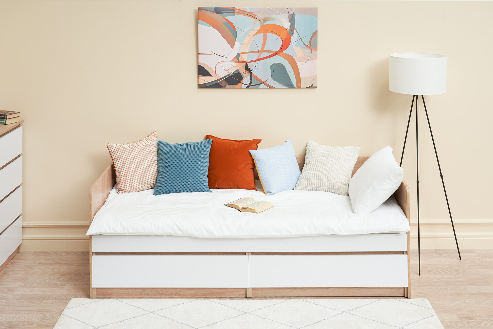 Кровать Скайс ящиками белый текстурный, 140х200 см