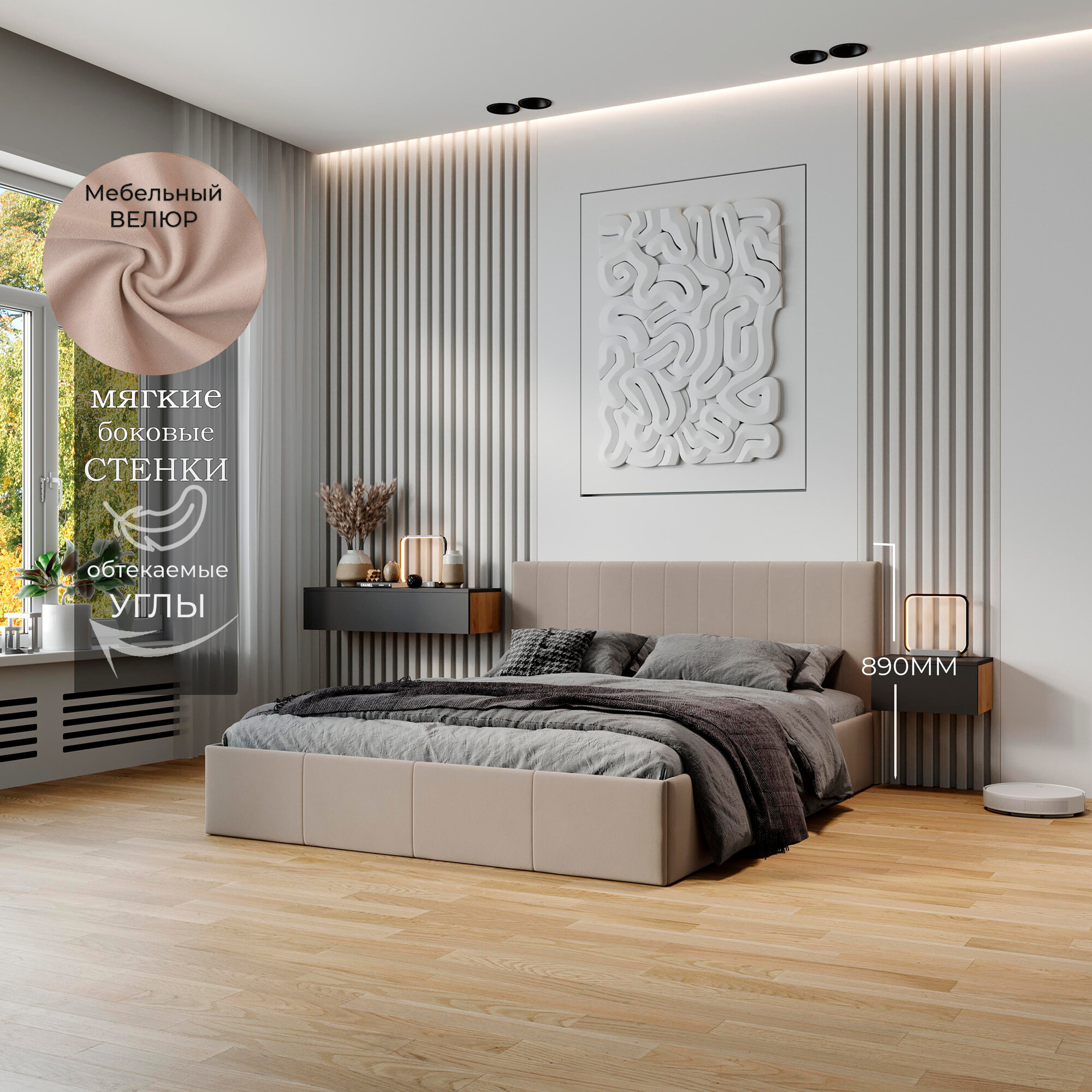 Кровать двуспальная FRENT 160х200 с подъемным механизмом, Айрис, Велюр Confetti Cream информация: