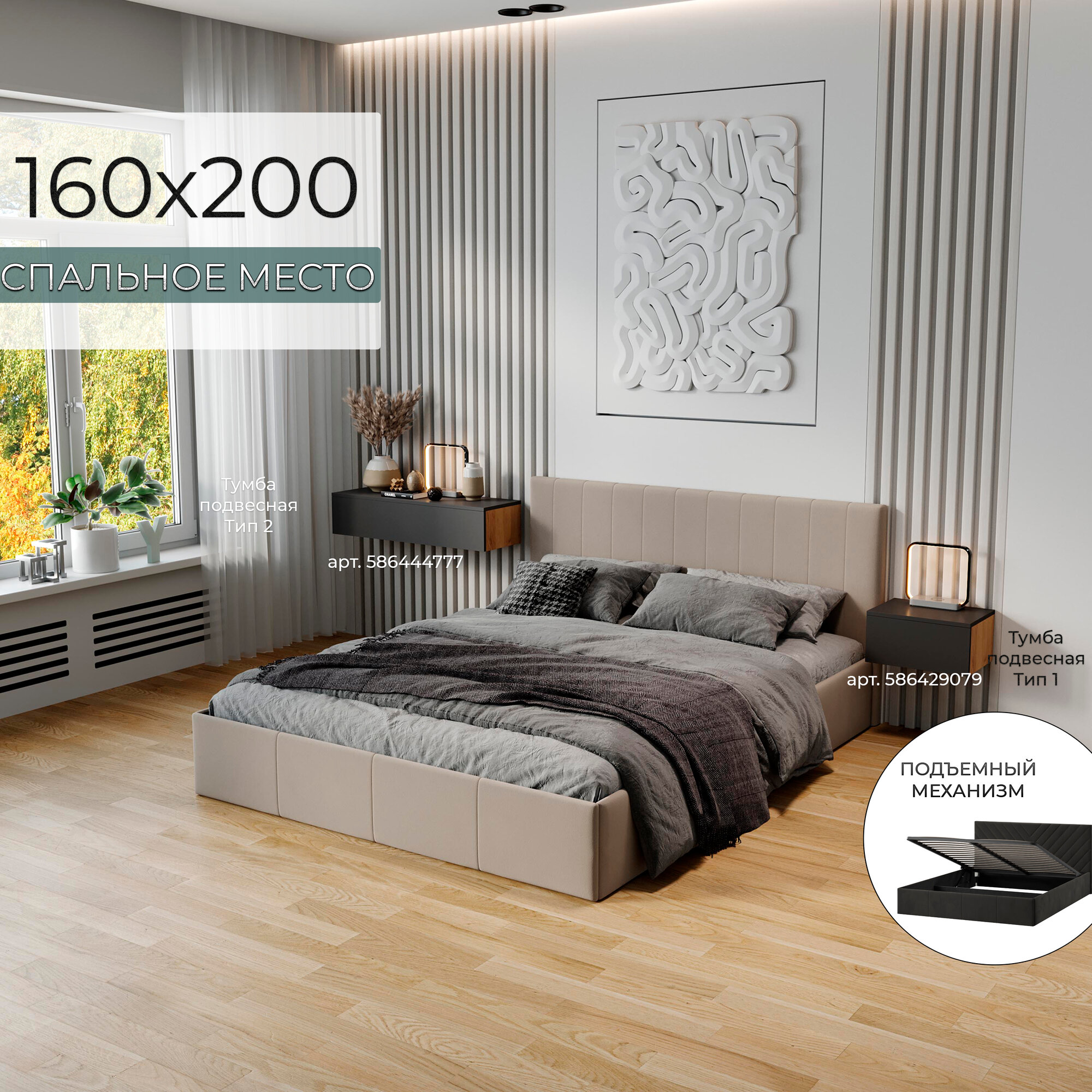 | Особенности | мягкое изголовье, с изножьем, с подъемным механизмом |