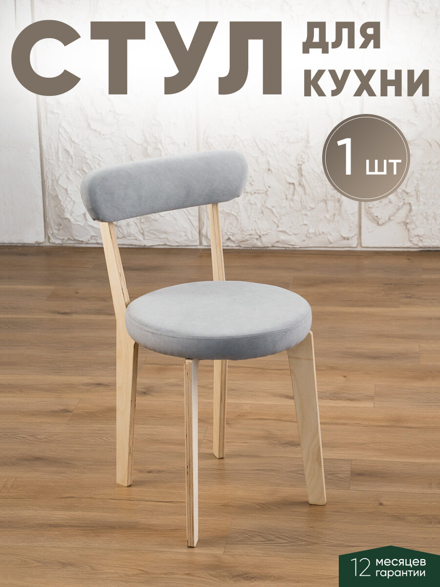 Стул для кухни мягкий со спинкой для дома светлый дуб + серый информация: