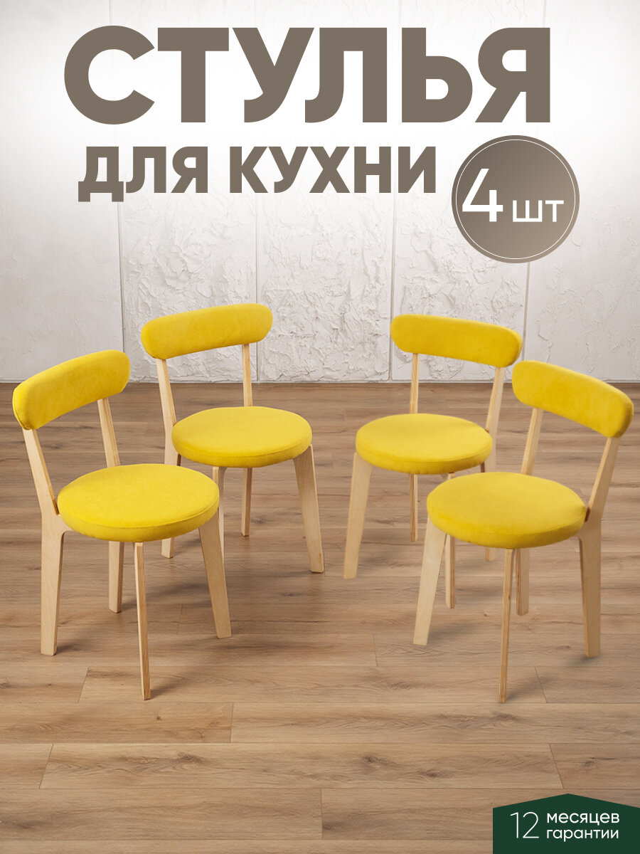 Стулья для кухни 4 шт мягкие со спинкой для дома светлый дуб + желтый информация: