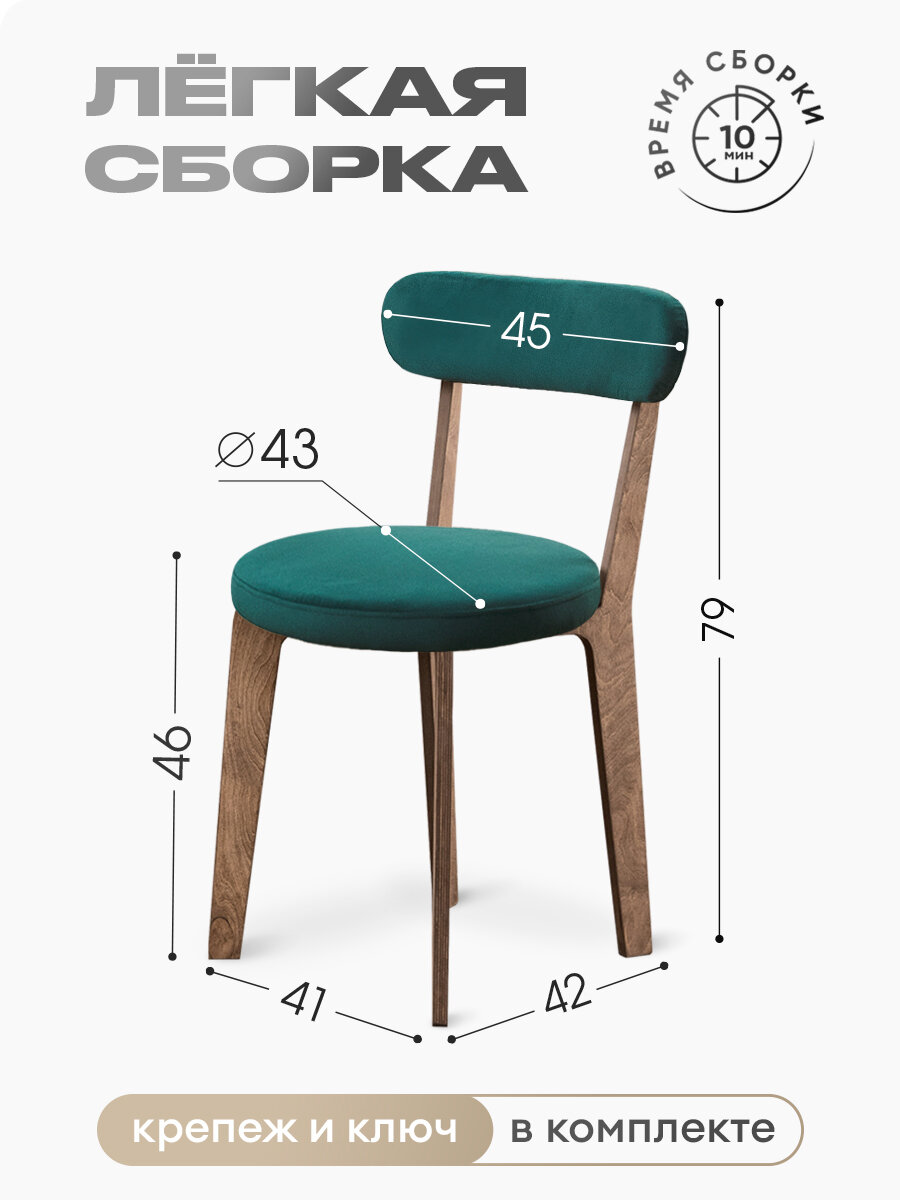 Стул для кухни мягкий со спинкой для дома дуб + зеленый, нагрузка до 120кг 5 500 ₽