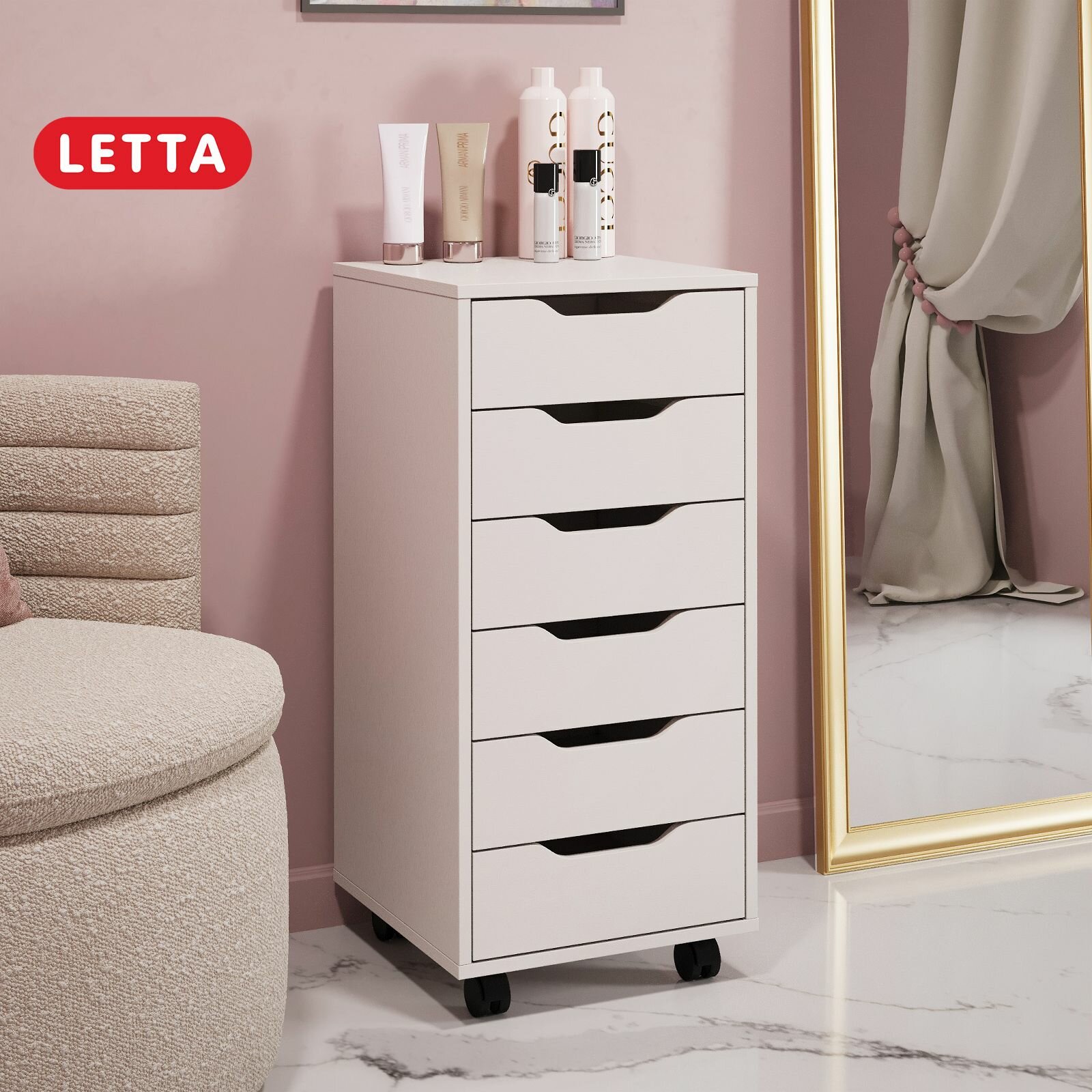 Комод тумба офисная Praga 6 ящиков выкатной Белое тиснение информация: