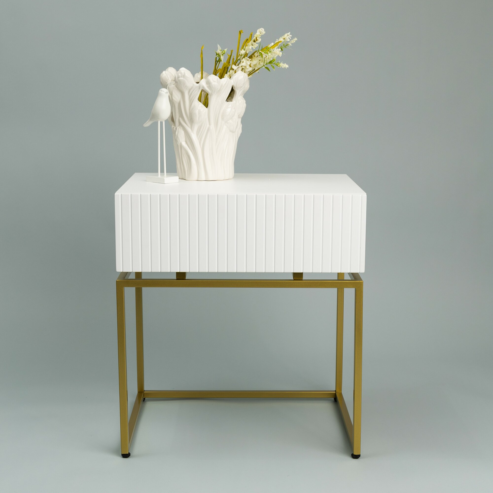 10 цен на Тумба прикроватная белая с ящиком, тумбочка напольная на золотых ножках, мебель для спальни Life 50х40х56 см