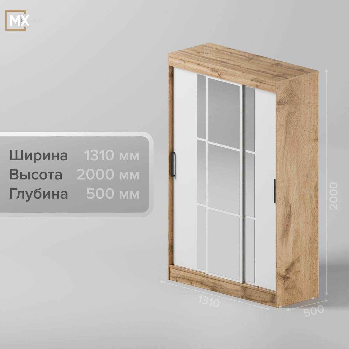 10 цен на Шкаф-Купе Тайм-2/ Бассо/ Бруно Дуб Вотан/Белый, ЛДСП с зеркалом, полками, штангами, для прихожей, спальни, гостиной 1310х2000х500 мебельный РАЙ