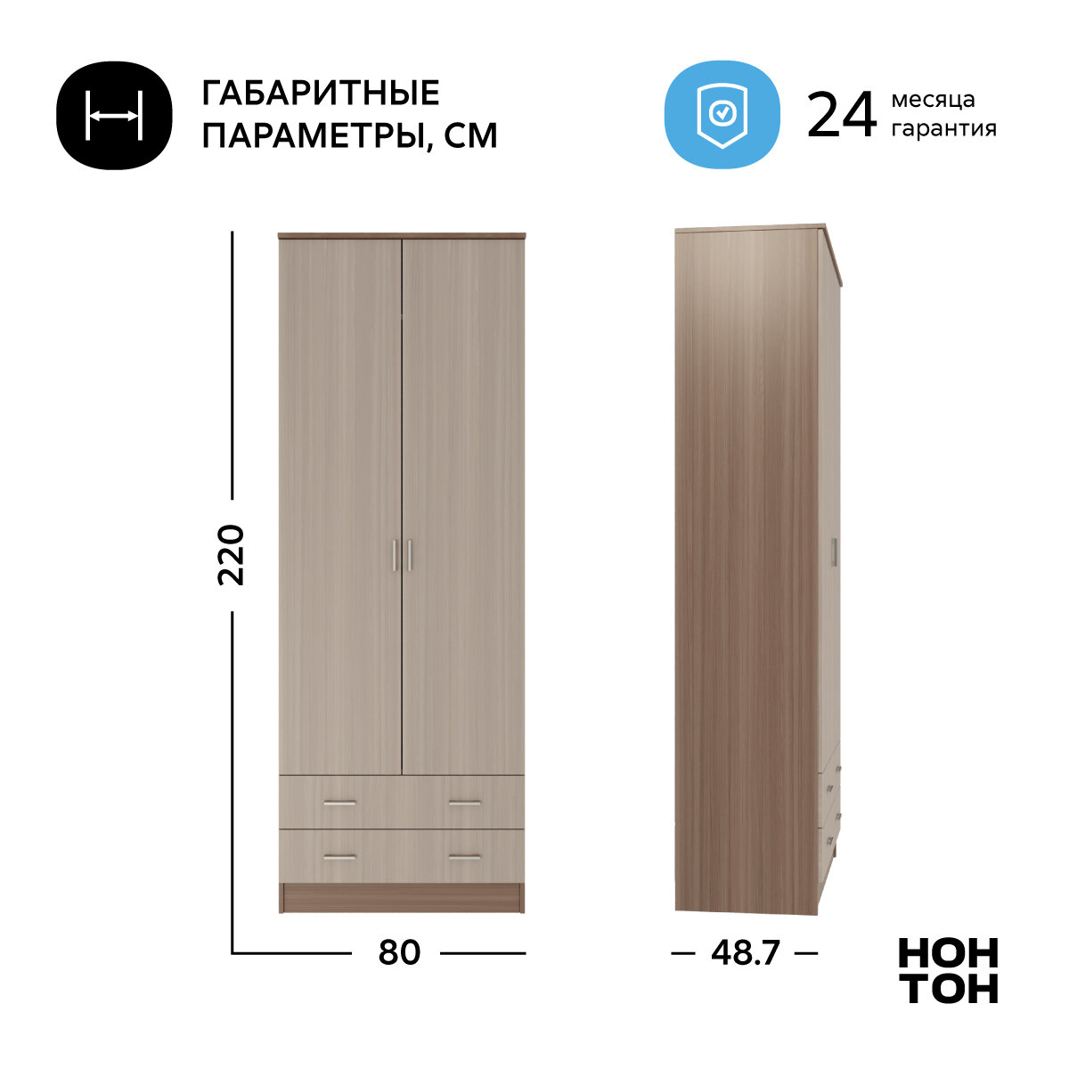 Шкаф для одежды Нонтон Дуэт, ясень шимо 80 см информация: