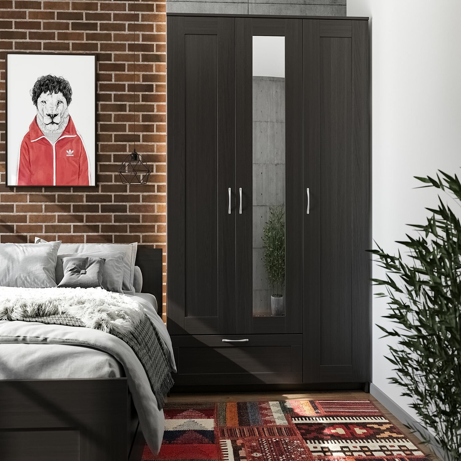 Шкаф ГУД ЛАКК Сириус, 3 двери и 1 ящик, 117х59х220 см, черно-коричневый, дуб венге 32 199 ₽