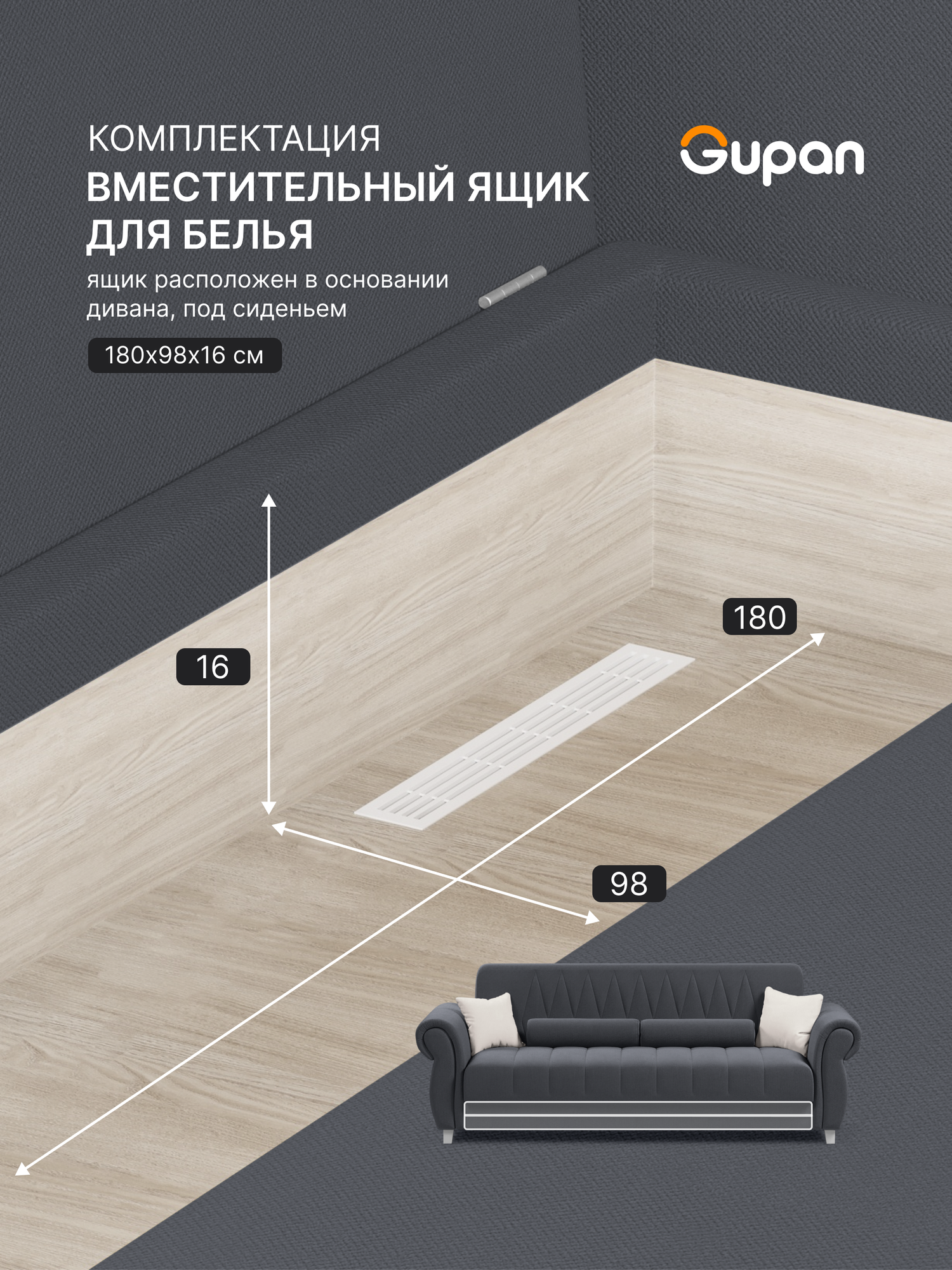 Диван кровать Gupan Роуз Велюр Amigo Grafit, раскладной, механизм книжка, беспружинный, с ящиком для белья информация: