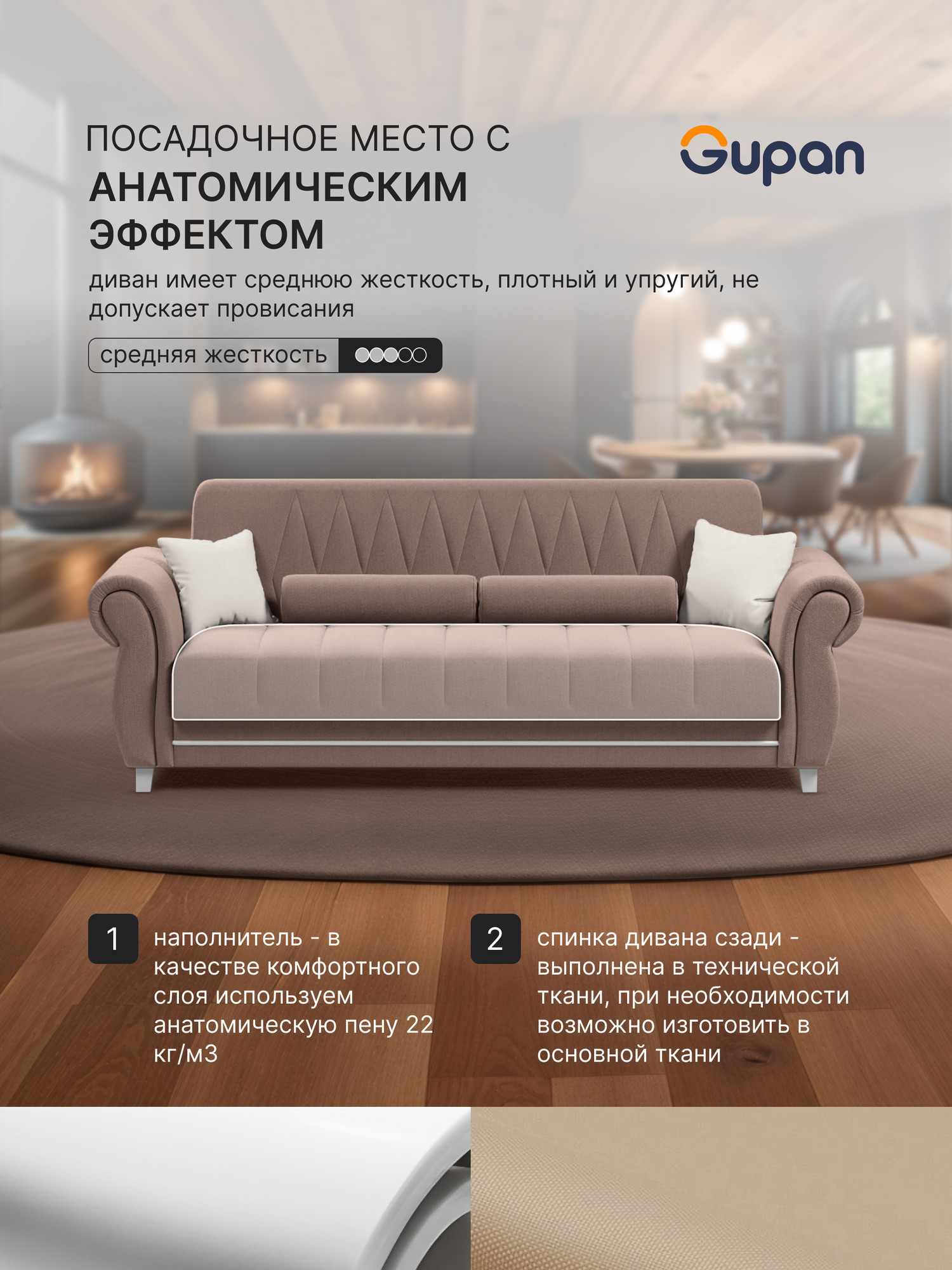 Отзывы на Диван кровать Gupan Роуз Велюр Amigo Latte, раскладной, механизм книжка, беспружинный, с ящиком для белья