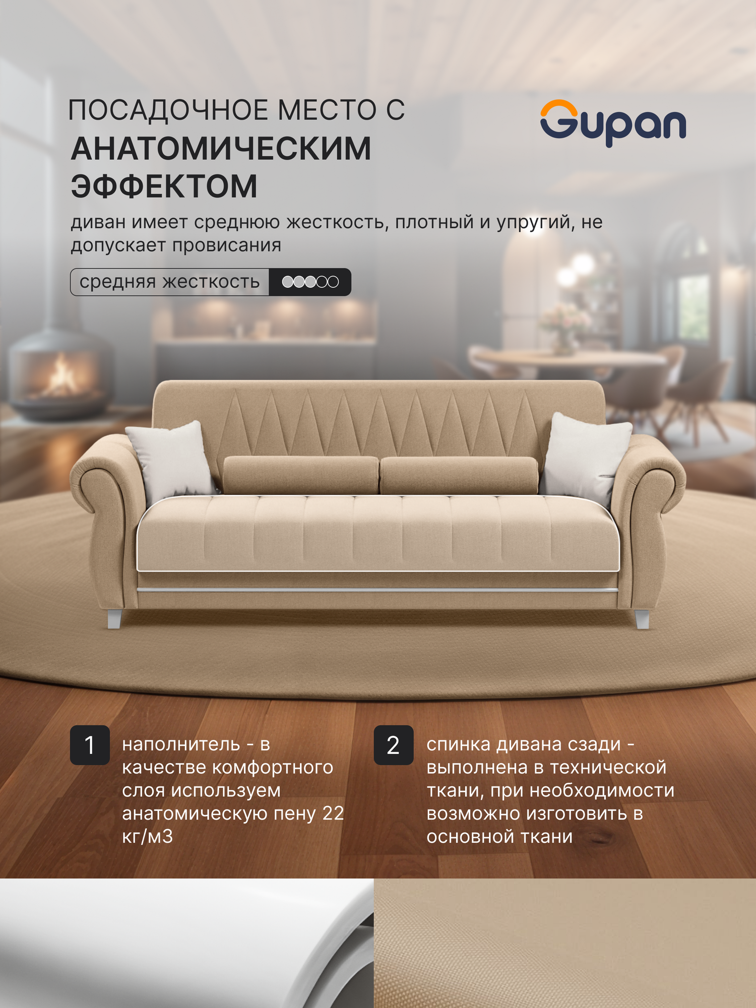 Отзывы на Диван кровать Gupan Роуз Велюр Amigo Beige, раскладной, механизм книжка, беспружинный, с ящиком для белья