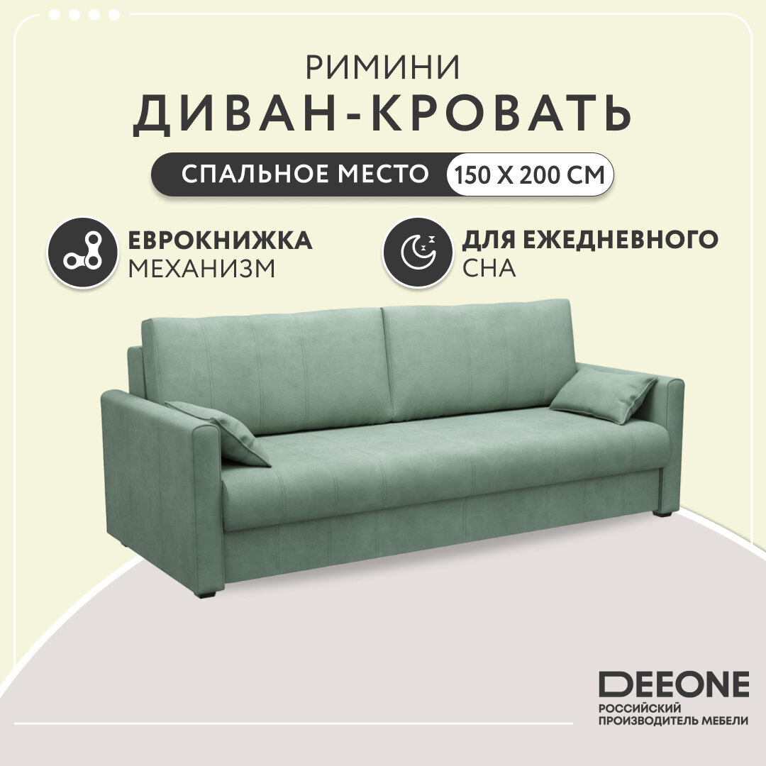 Отзывы на Диван-кровать раскладной прямой Dee One Римини, еврокнижка, велюр, 221х98х90, мятный