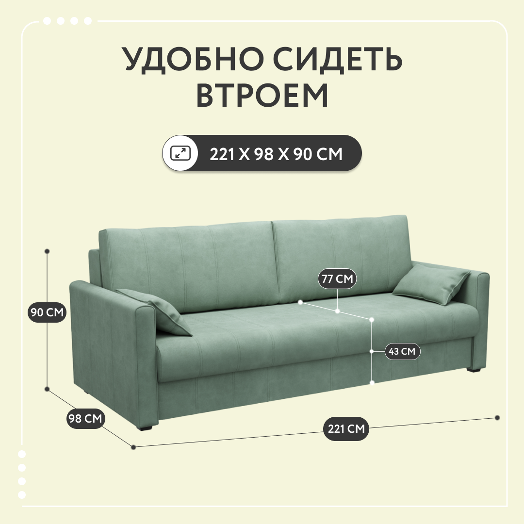 Диван-кровать раскладной прямой Dee One Римини, еврокнижка, велюр, 221х98х90, мятный информация: