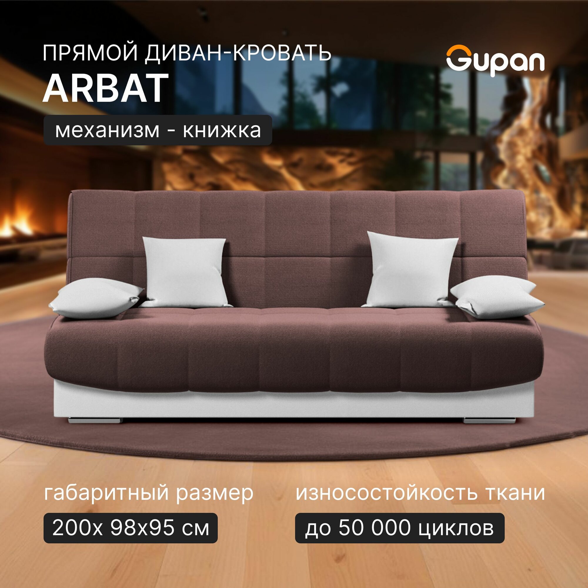 Диван кровать Gupan Арбат Велюр Amigo Chocolate, раскладной, механизм книжка, беспружинный, с ящиком для белья информация: