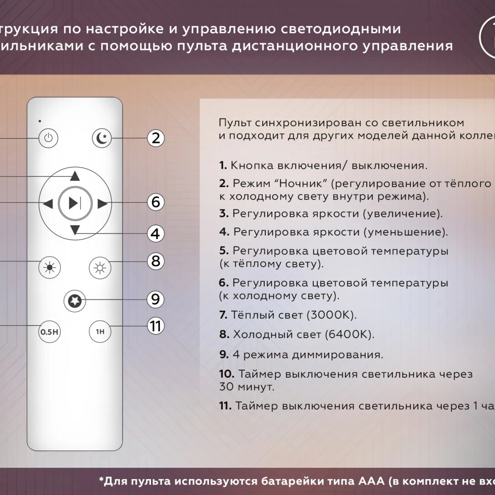 | Управление | механическое / пульт дистанционного управления / регулировка яркости диммером / управление со смартфона |