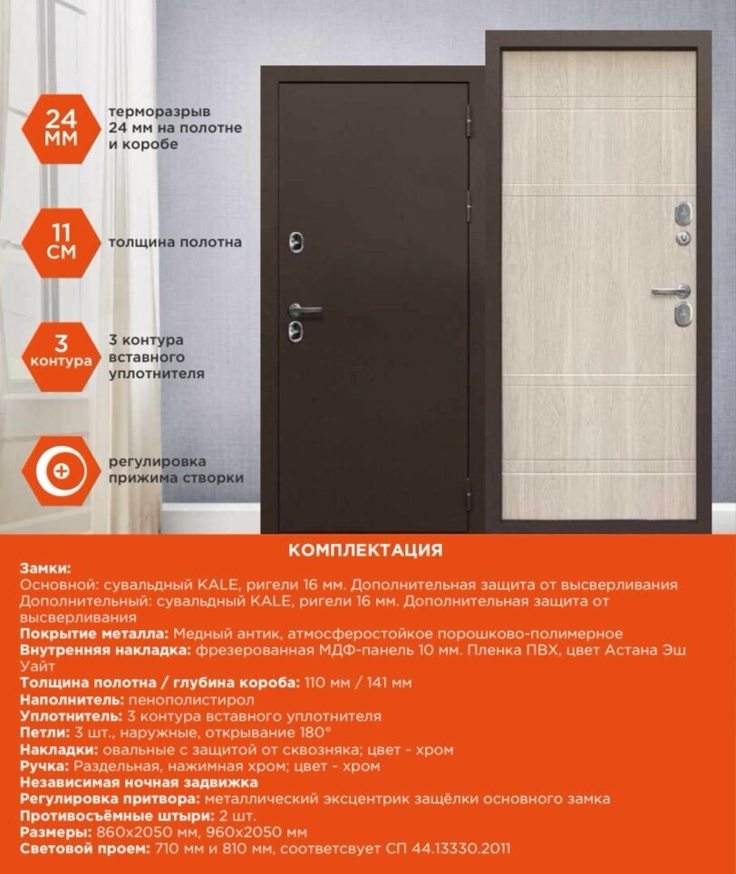 Дверь стальная мегатрон Термо-6 Медь-Астана Эш Уайт 860 Правая (терморазрыв)