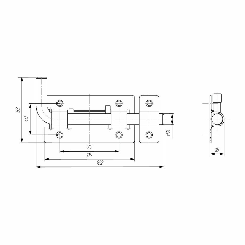 Засов Киров Секрет ЗД-03 серый металлик круглый Г-образный (20)