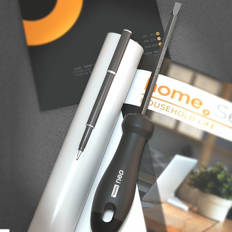 10 цен на Двухсторонняя отвертка "Home Series Black" Deli HT1055 (SL5+PH1х100мм, Cr-V, эксклюзивный дизайн, софттач, магнит) 104599