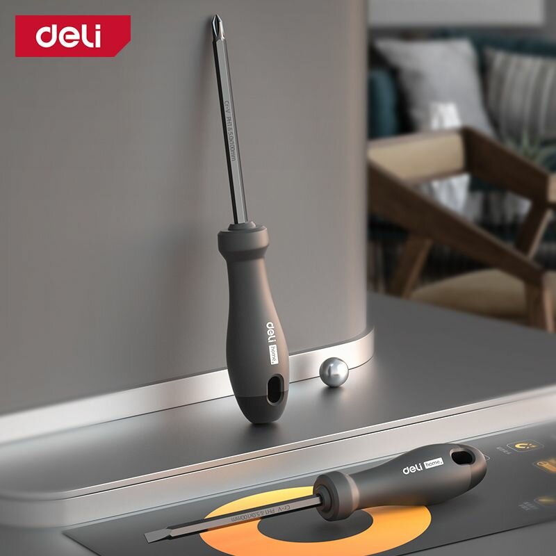 Отзывы на Двухсторонняя отвертка "Home Series Black" Deli HT1055 (SL5+PH1х100мм, Cr-V, эксклюзивный дизайн, софттач, магнит) 104599