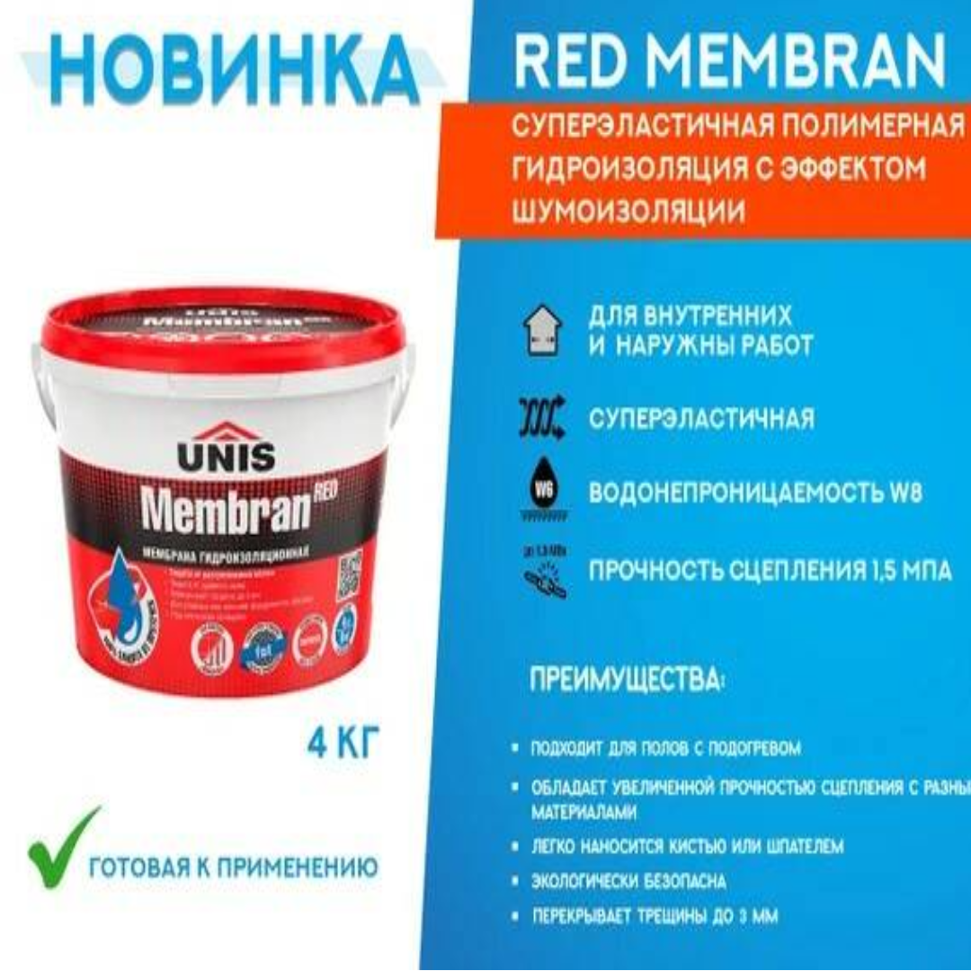 Мембрана Unis Membran Protect Red под плиточную облицовку, полимерная, суперэластичная, 4 кг информация: