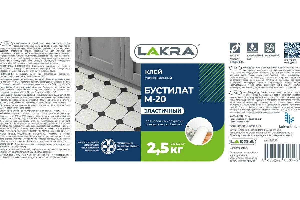 | Дополнительная информация | Клей ЛАКРА М-20 Бустилат 2,5кг, арт.М20-2,5 |