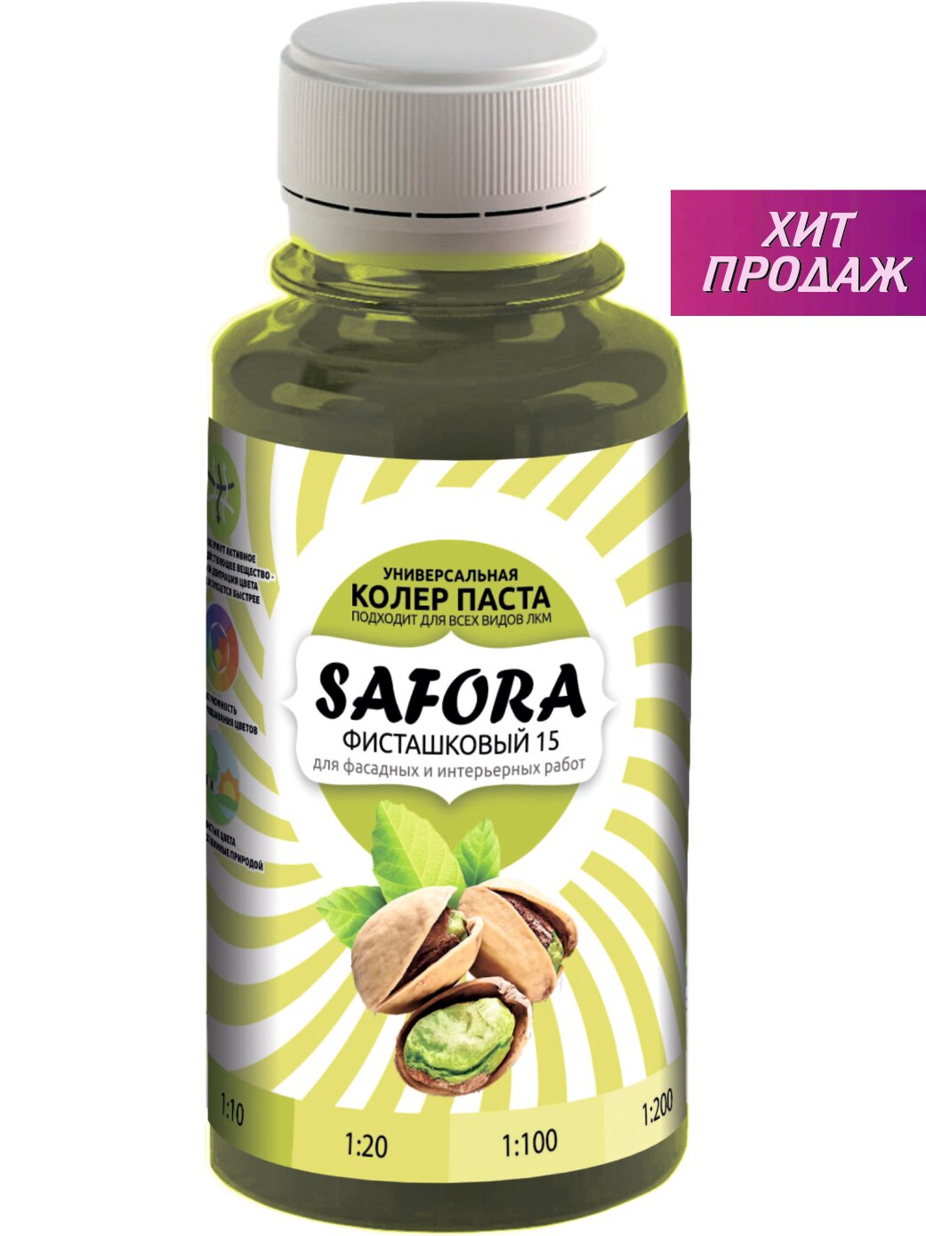 10 цен на Колеровочная паста 15 фисташковый, SAFORA 100мл, колер для краски, штукатурки и других материалов