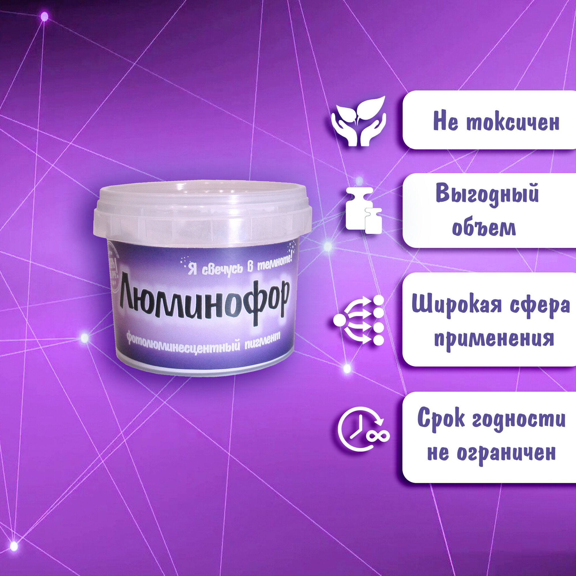 Отзывы на Люминофор (Фотолюминесцентный пигмент), Фиолетовое свечение 100 гр.