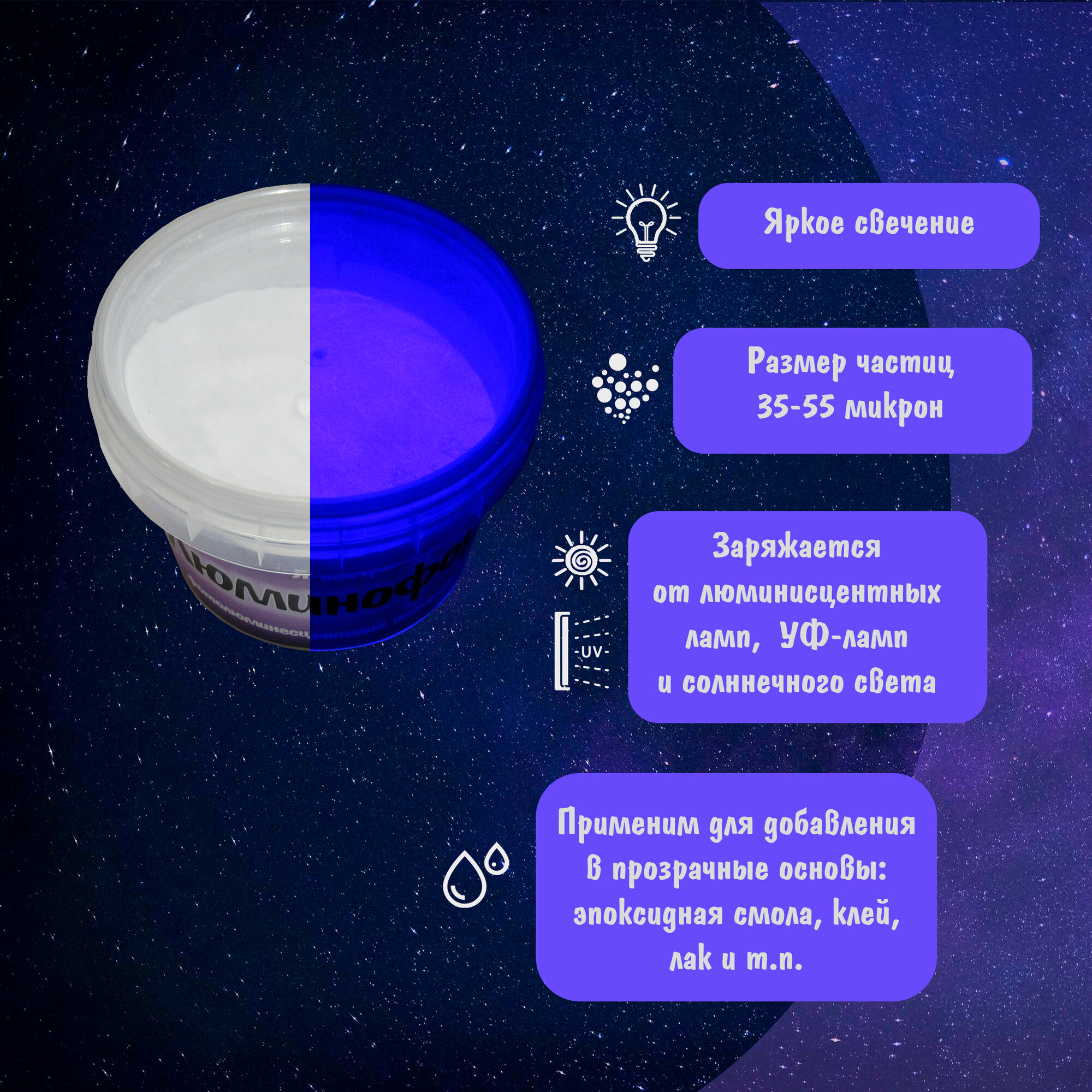 10 цен на Люминофор (Фотолюминесцентный пигмент), Фиолетовое свечение 100 гр.