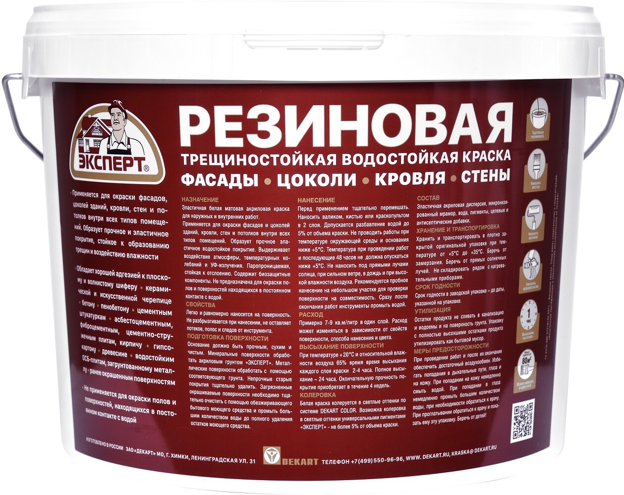Краска эксперт резиновая, эластичная, База А,белый, 9л информация: