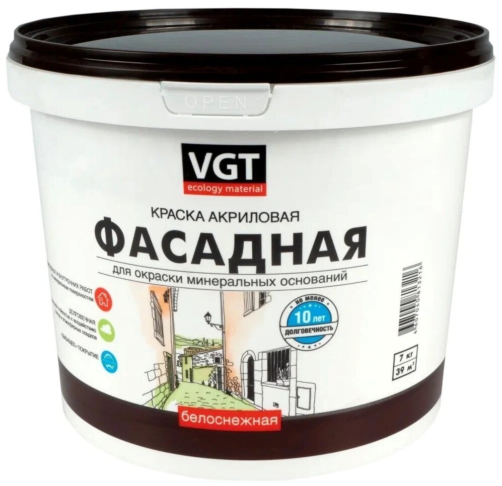 Отзывы на Краска VGT ВД-АК-1180 белоснежная фасадная акриловая, долговечная, матовая 7кг
