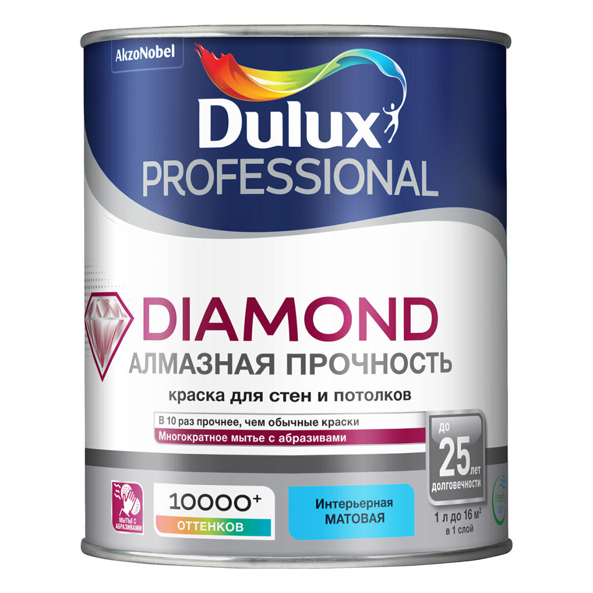 10 цен на Краска DULUX DIAMOND алмазная прочность для стен и потолков, износостойкая, матовая, белая, BW 1л