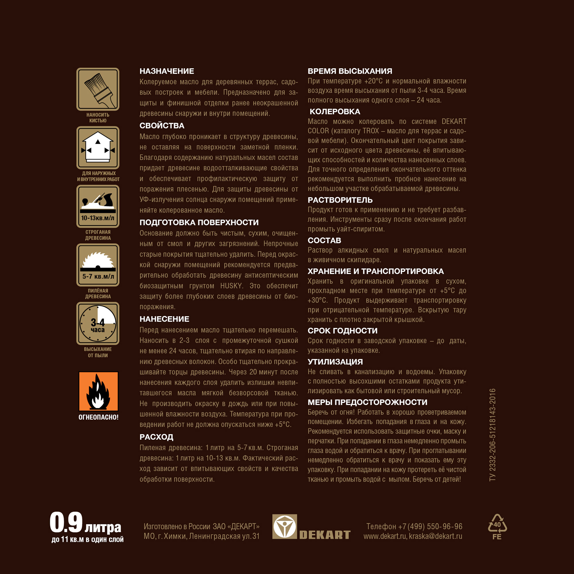 | Дополнительная информация | расход: пиленая древесина — 1 л на 5-7 кв.м; строганая древесина — 1 л на 10-13 кв.м |
