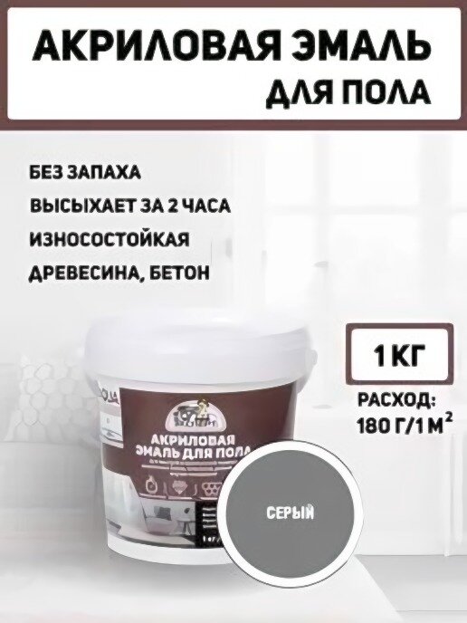 Эмаль акриловая полуглянцевая для пола Эксперт 1кг серый информация: