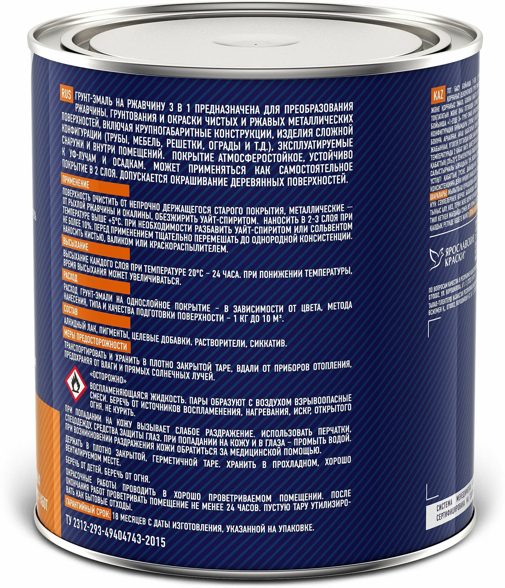 Грунт-эмаль FAKTOR на ржавчину 3 в 1 серая, банка 0,8 кг информация: