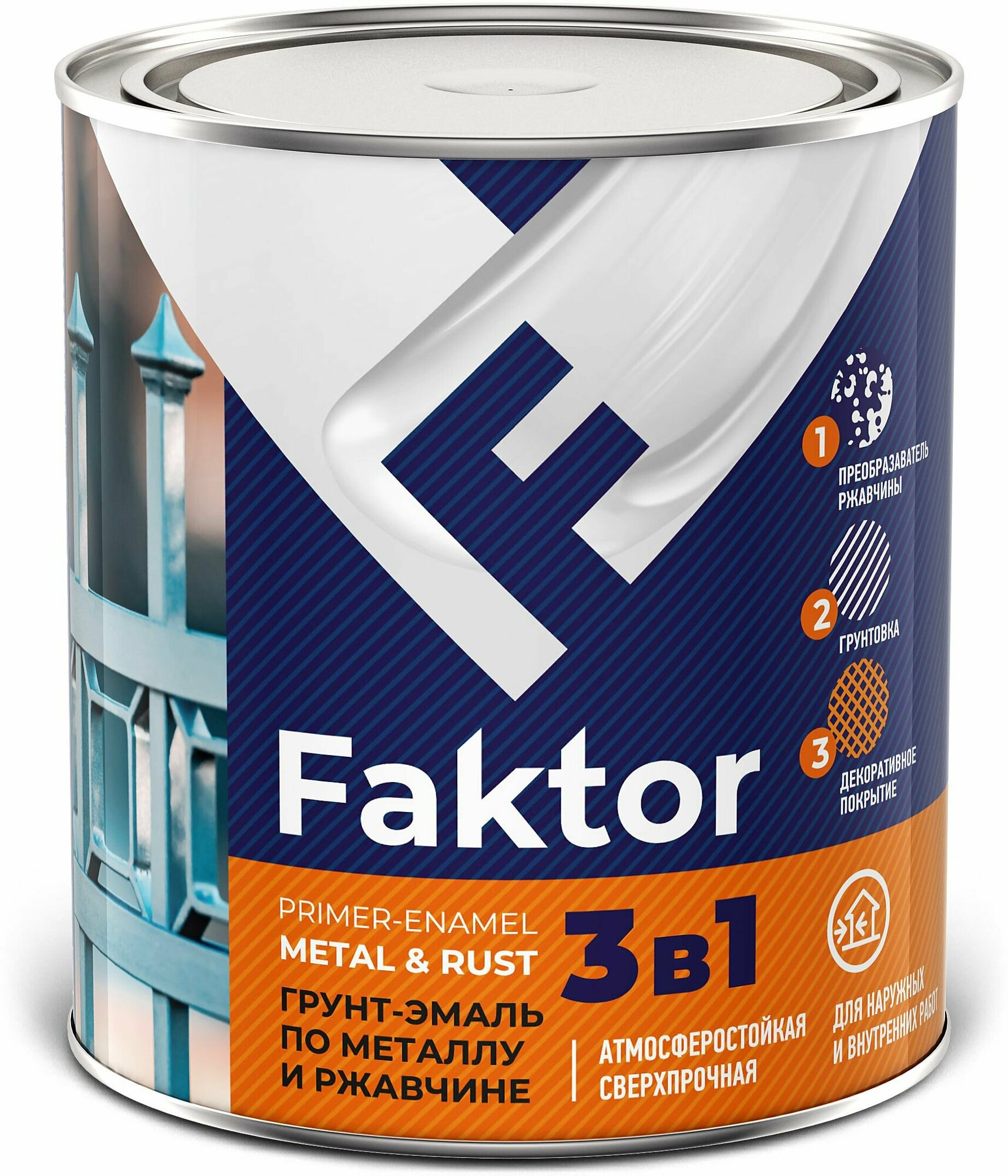 10 цен на Грунт-эмаль FAKTOR на ржавчину 3 в 1 серая, банка 0,8 кг