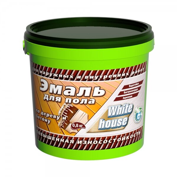 Эмаль Акриловая для Пола White House 0.8кг Белый, Полуматовая Без Запаха / Вайт Хаус. информация: