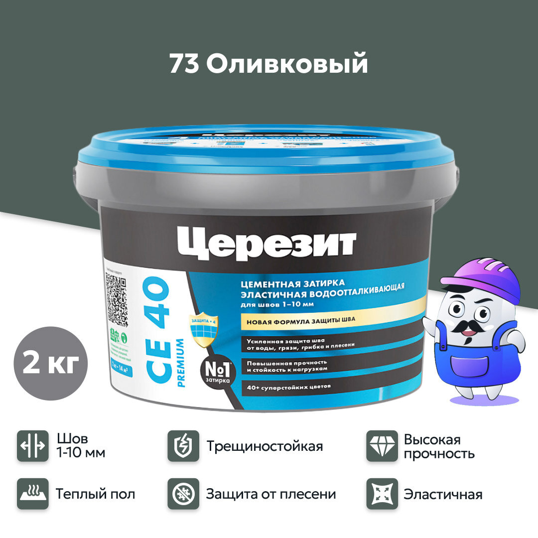 Затирка цементная водоотталкивающая Церезит CE 40 оливковый №73, 2 кг информация:
