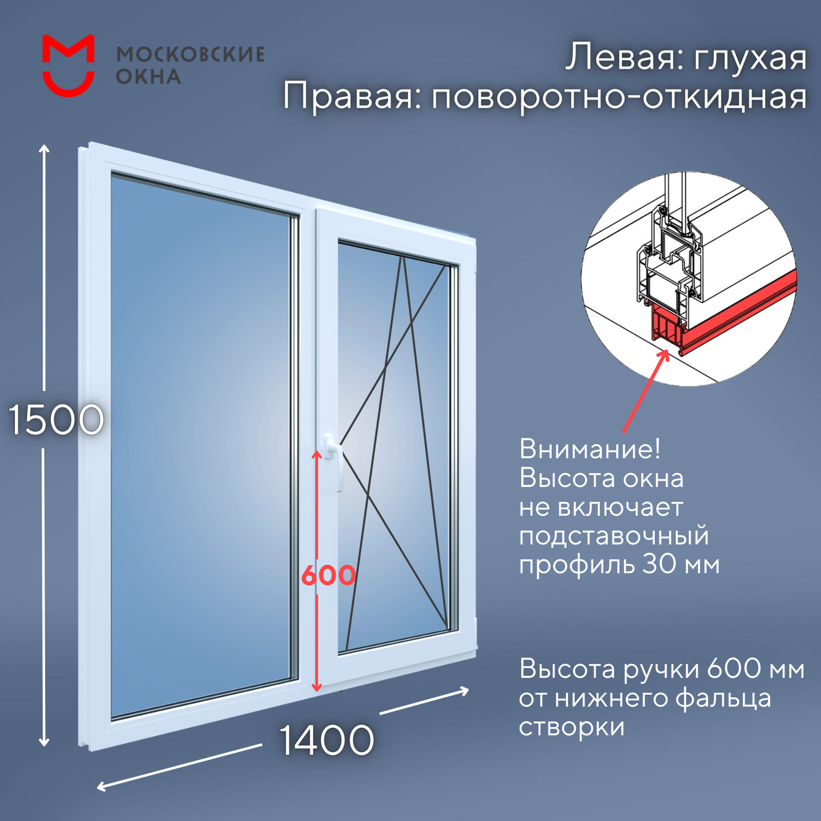 Пластиковое окно 1500х1400 мм (ВхШ) ПВХ REHAU BLITZ, 2 створки, от производителя Московские окна информация: