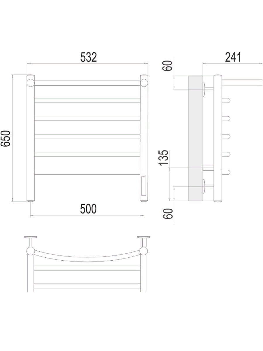 Полотенцесушитель электрический Terminus Классик 6П 500х650 правый (4670078531322) информация:
