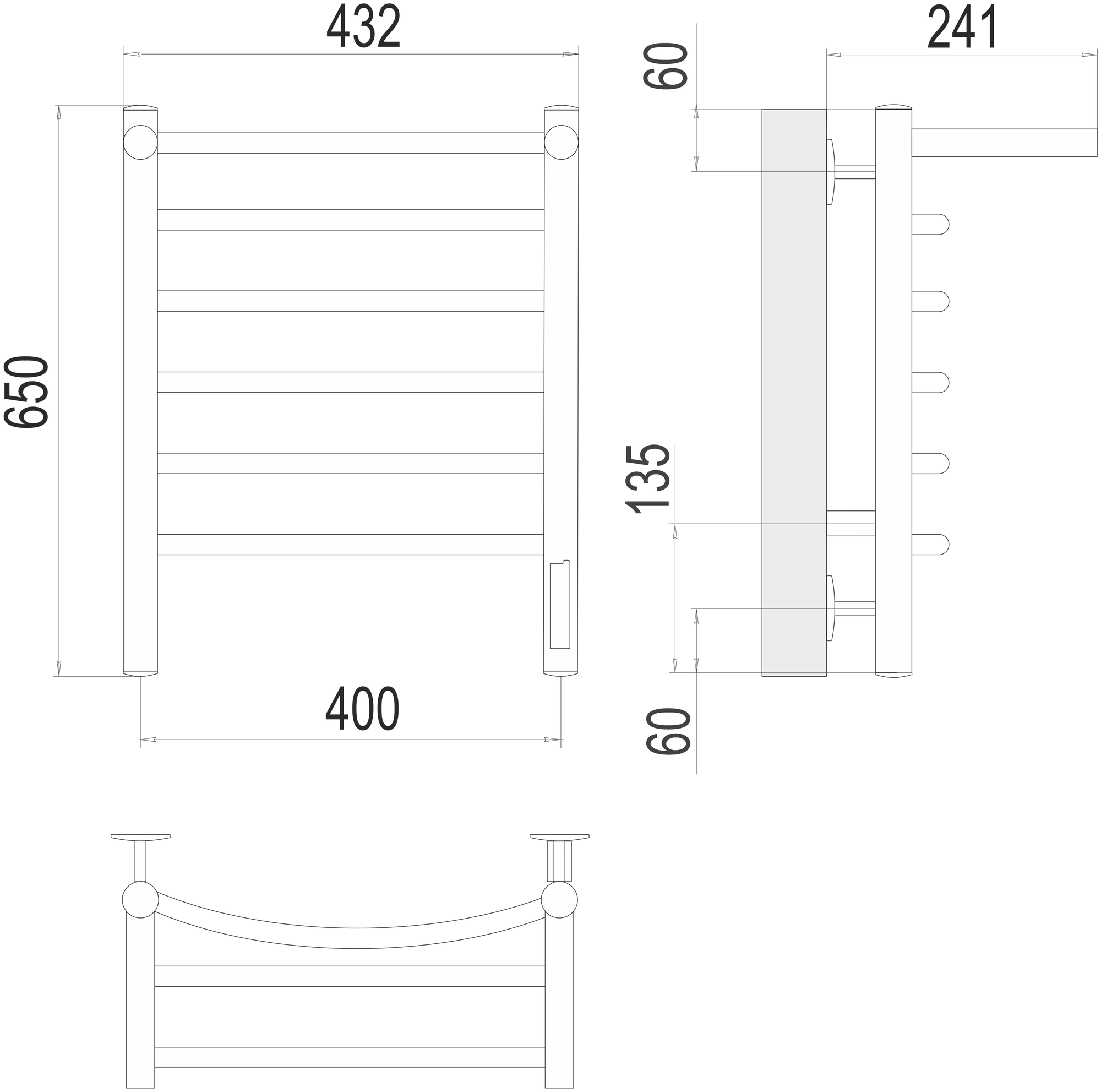 Полотенцесушитель электрический Terminus Классик 6П 400х650 правый, с полкой (4670078531384) информация: